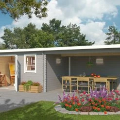 Gartenhaus RENO – lichtgrau – Fichte massiv – 760×275 cm