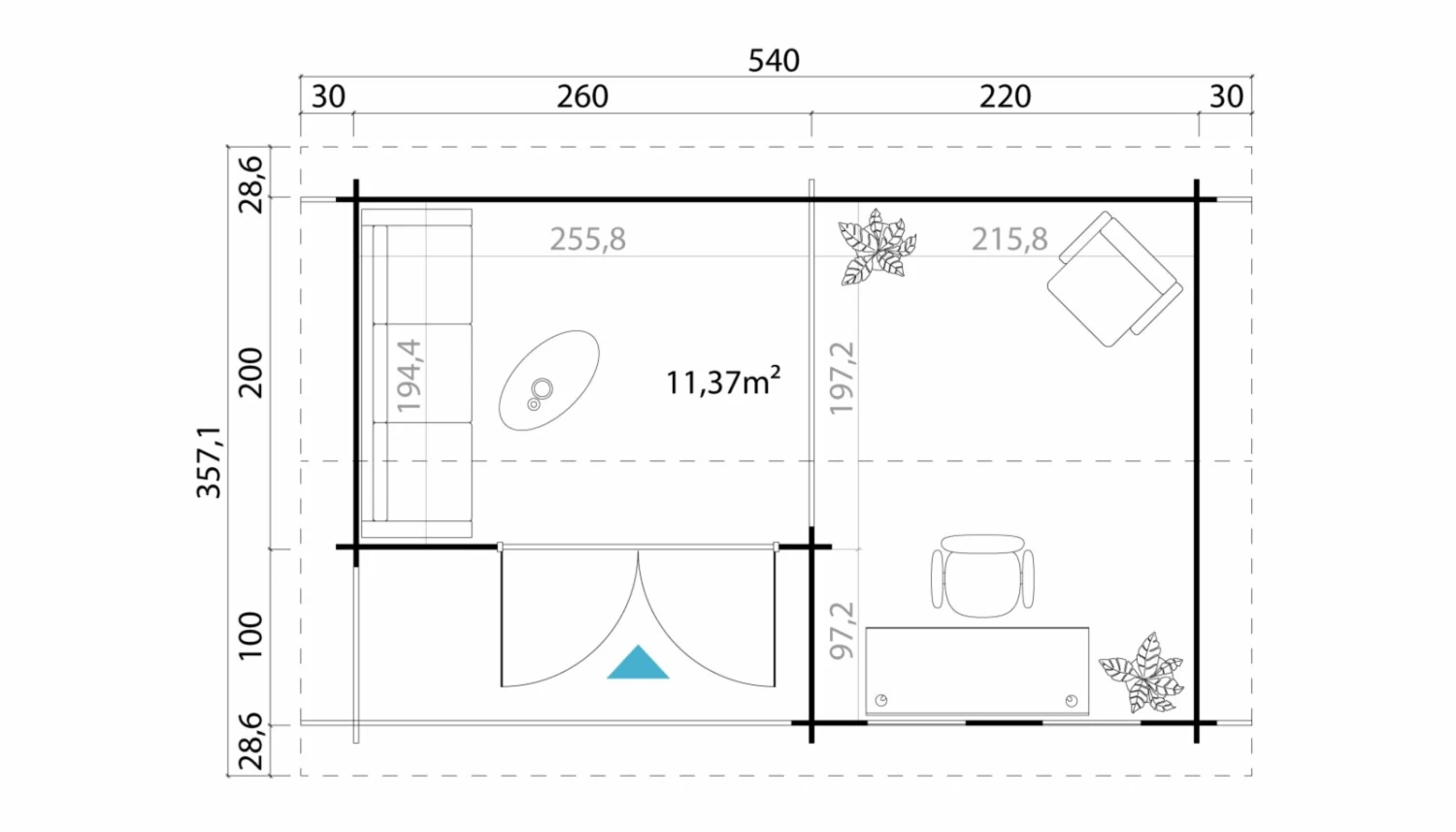Gartenhaus RIVERSIDE – naturbelassen – Fichte massiv – 480×300 cm