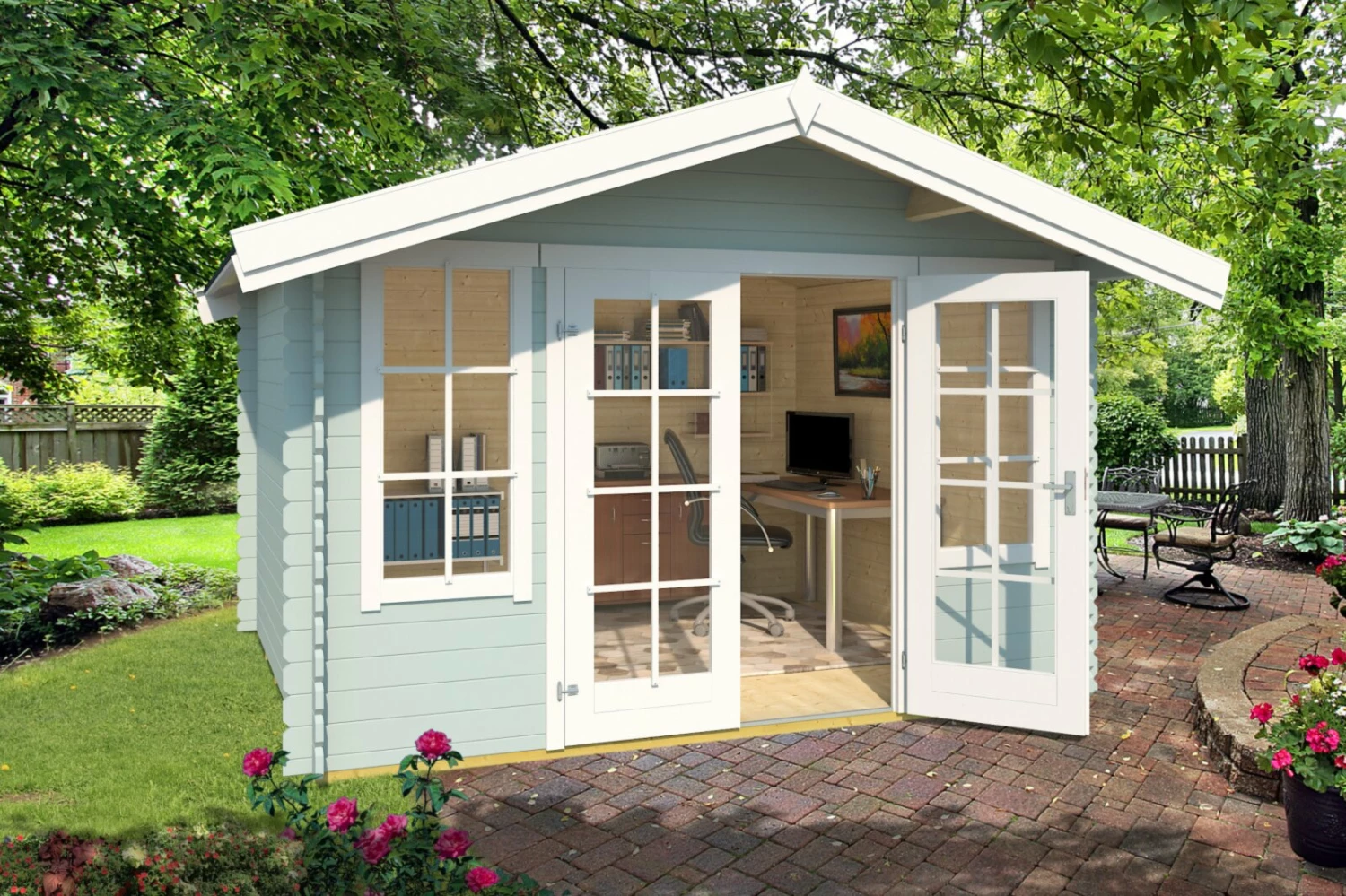 Gartenhaus ROBIN – gletschergrün – Fichte massiv – 330×280 cm