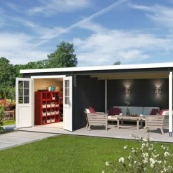 Gartenhaus SAINT PAUL – carbongrau – Fichte massiv – 275×570 cm