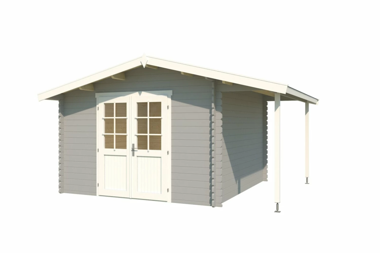 Gartenhaus TULSA – lichtgrau – Fichte massiv – 292×392 cm