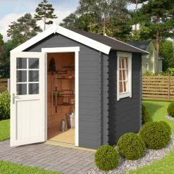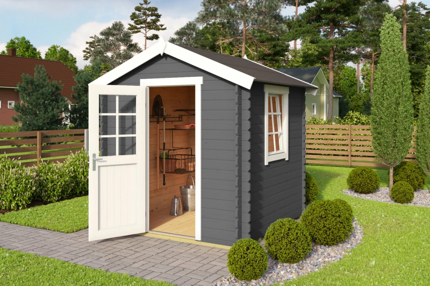 Gartenhaus WELS 1 – carbongrau – Fichte massiv – 200×200 cm