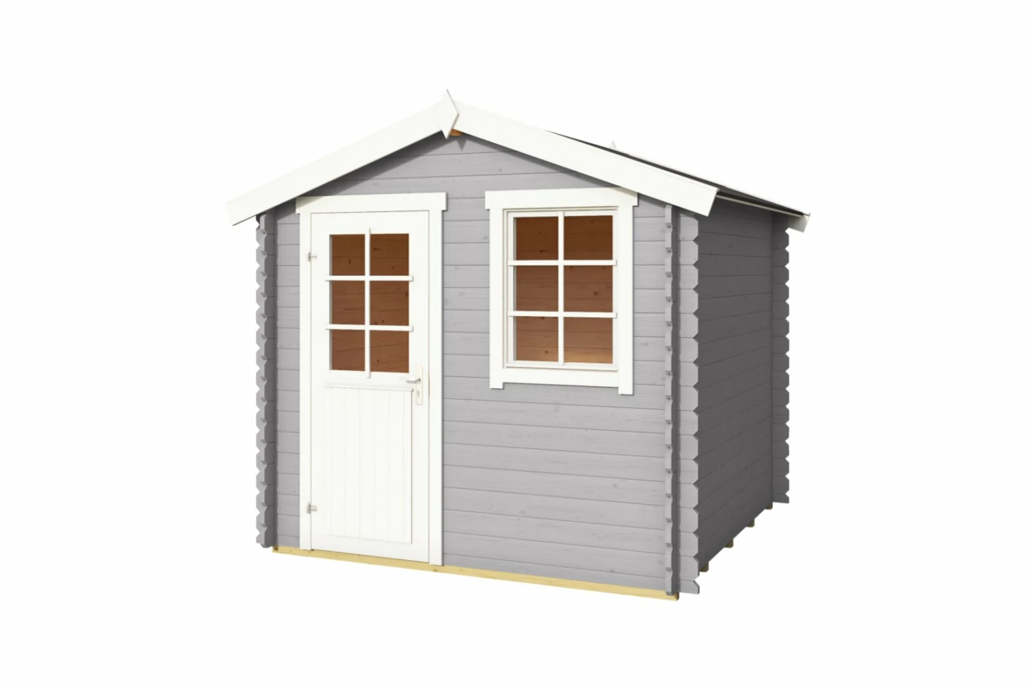 Gartenhaus WELS 2 – lichtgrau – Fichte massiv – 230×230 cm