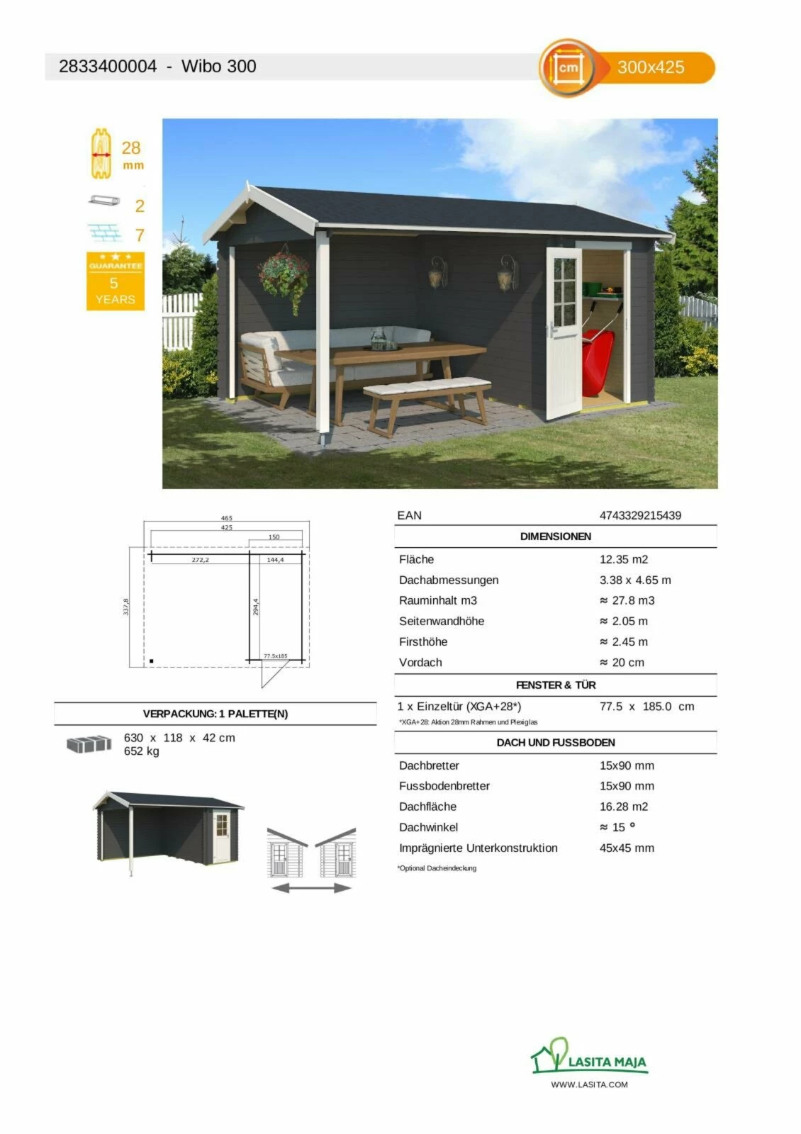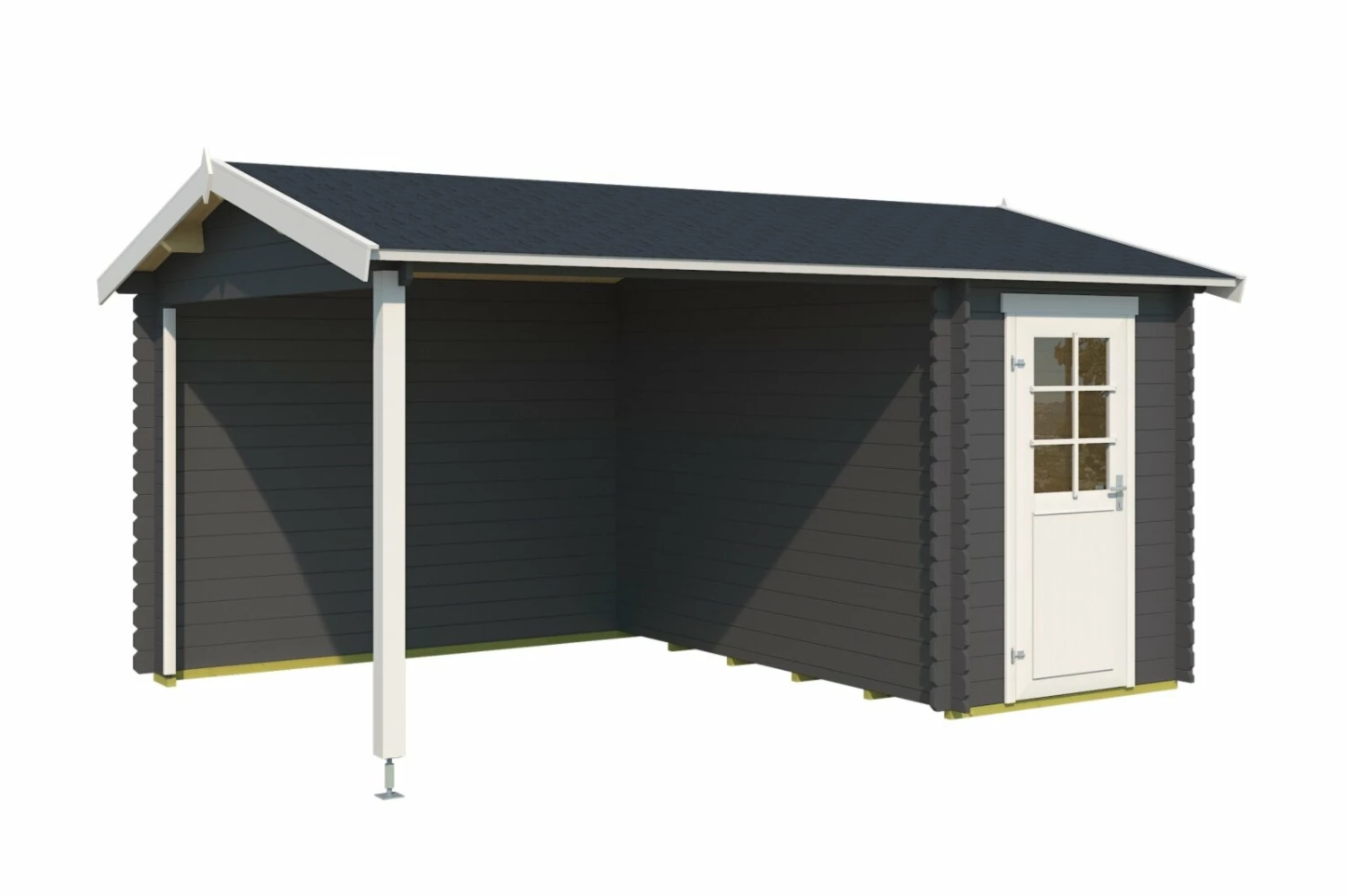 Gartenhaus WIBO – carbongrau – Fichte massiv – 425/144×300 cm