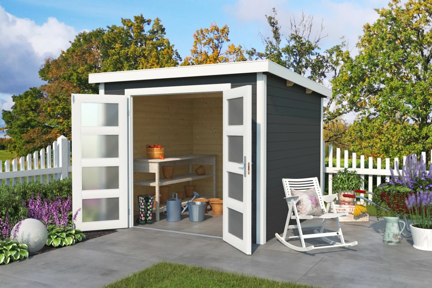 Gartenhaus ZAMBEZI 5 – carbongrau – Fichte massiv – 250×300 cm