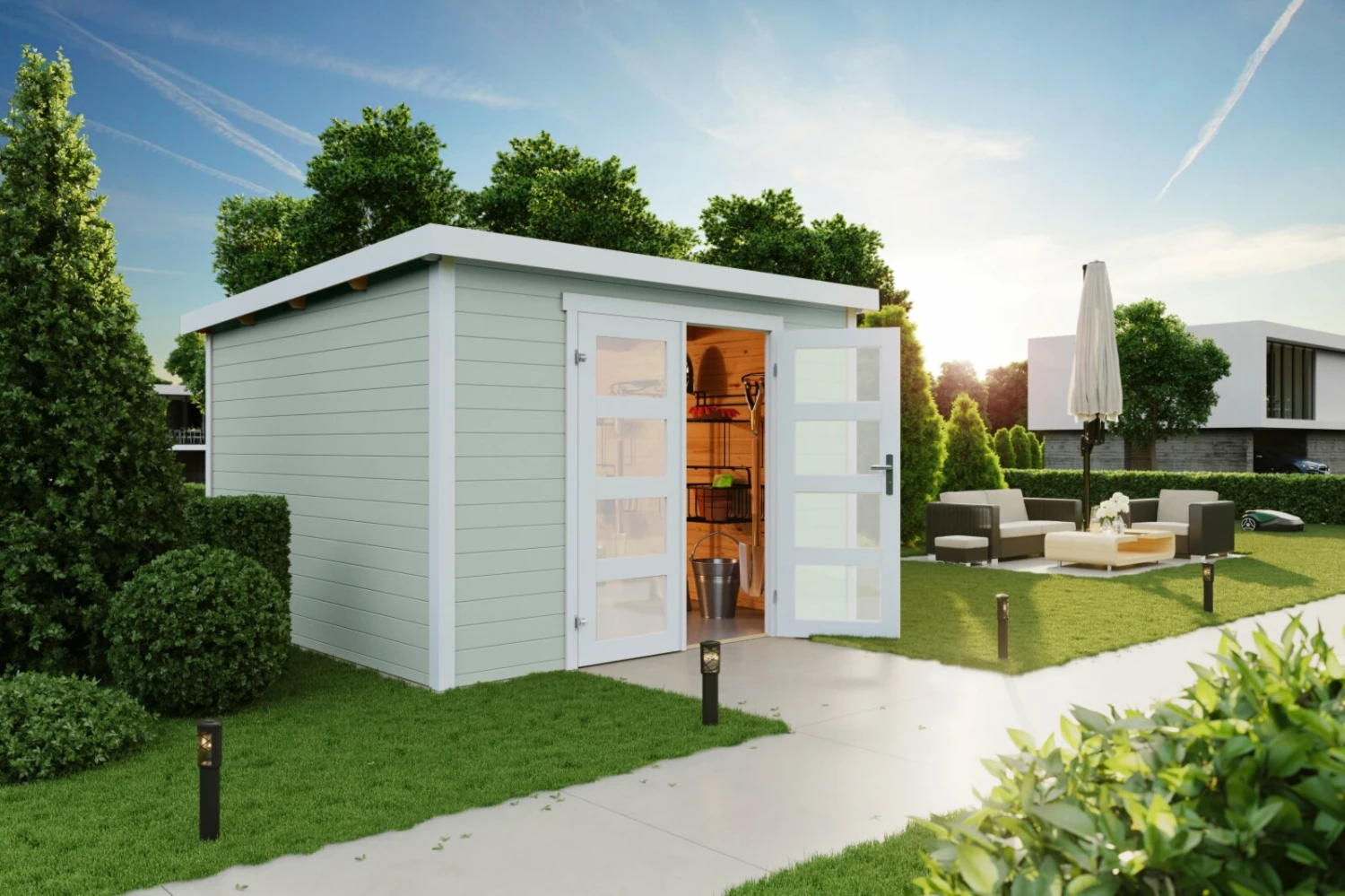 Gartenhaus ZAMBEZI 6 – gletschergrün – Fichte massiv – 300×250 cm