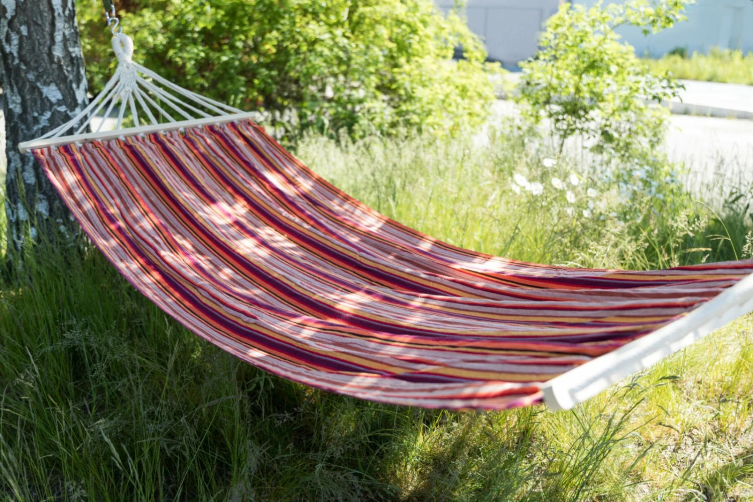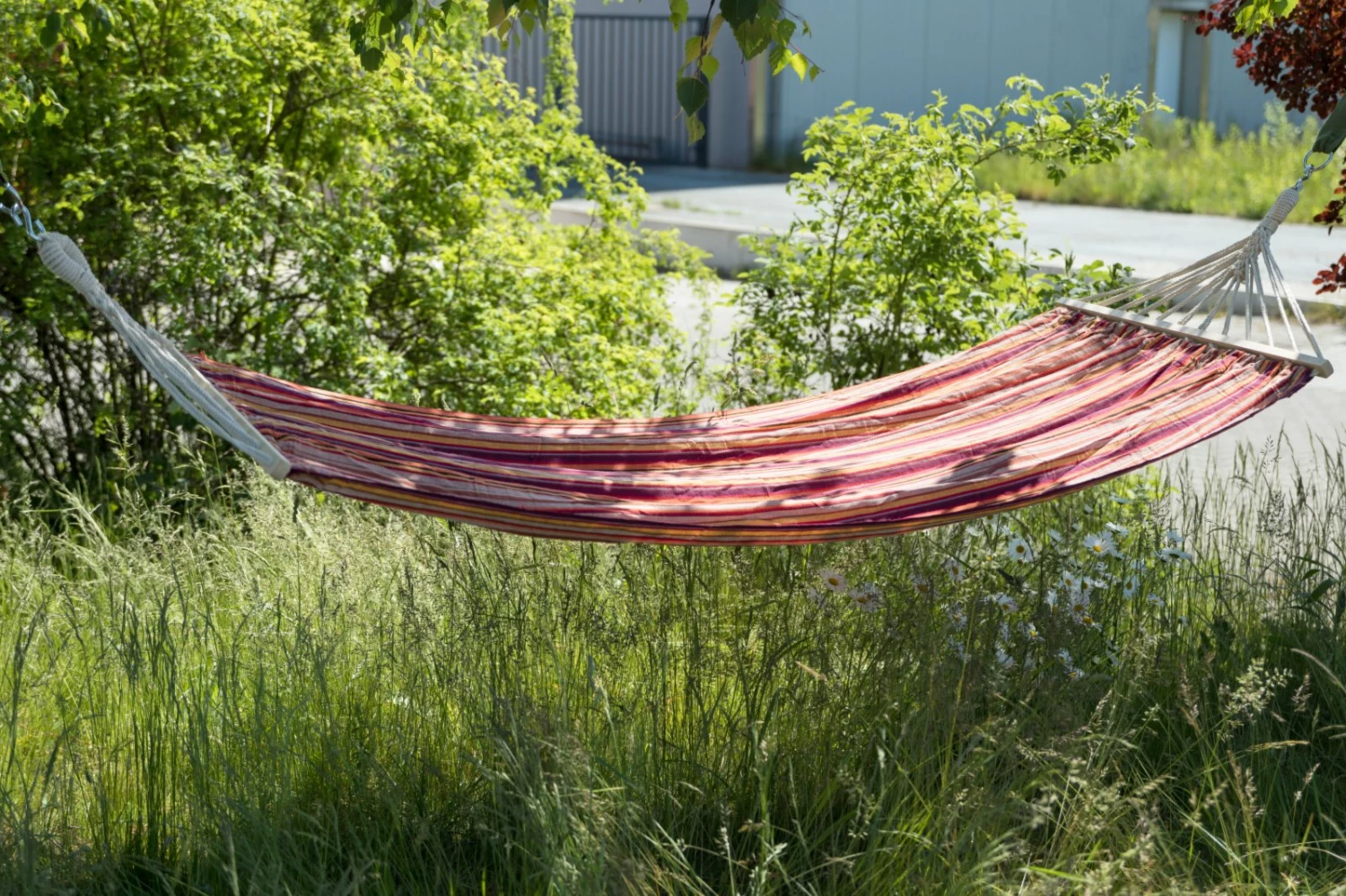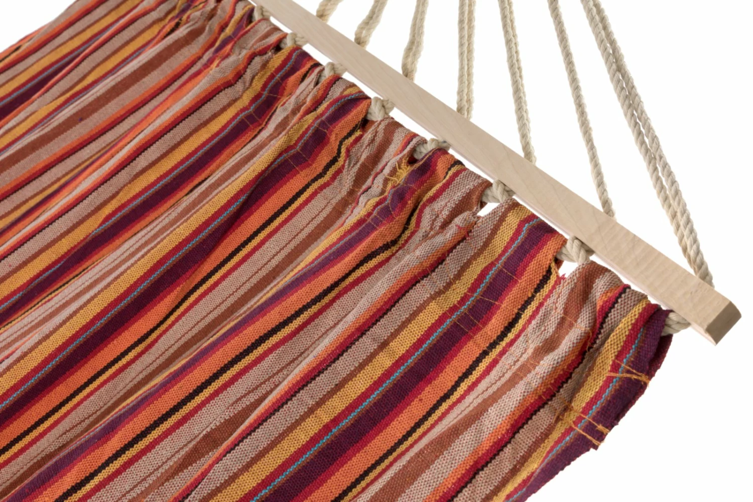 Sommerliche Hängematte im bunten Streifenmuster. Schalten Sie doch einfach mal ab und entspannen sich ein wenig auf dieser bequemen Hängematte. Sie kann entweder zwischen zwei Bäumen oder auf einem Gestell befestigt werden. Sie besteht zu 100% aus Polyester und wurde handgefertigt. Die Hängematte NEPHELE eignet sich großartig um ein paar ruhige Momente nach einem stressigen und anstrengenden Arbeitstag zu genießen.