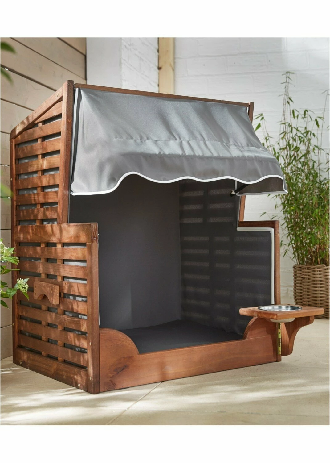 Ihr geliebter Hund findet in diesem Hundestrandkorb an heißen Sommertagen ein schattiges Plätzchen! Bereits im Lieferumgang enthalten ist ein Fress- oder Wassernapf, damit Ihr Vierbeiner immer ausreichend Flüssigkeit zu sich nehmen kann. Dieser Hundestrandkorb wird einfach das absolute Highlight in Ihrem Garten.