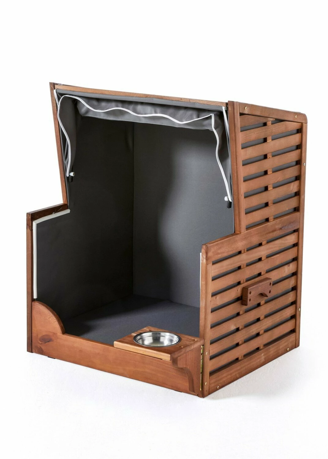 Hundestrandkorb – braun-grau – mit Napf – 75×95 cm