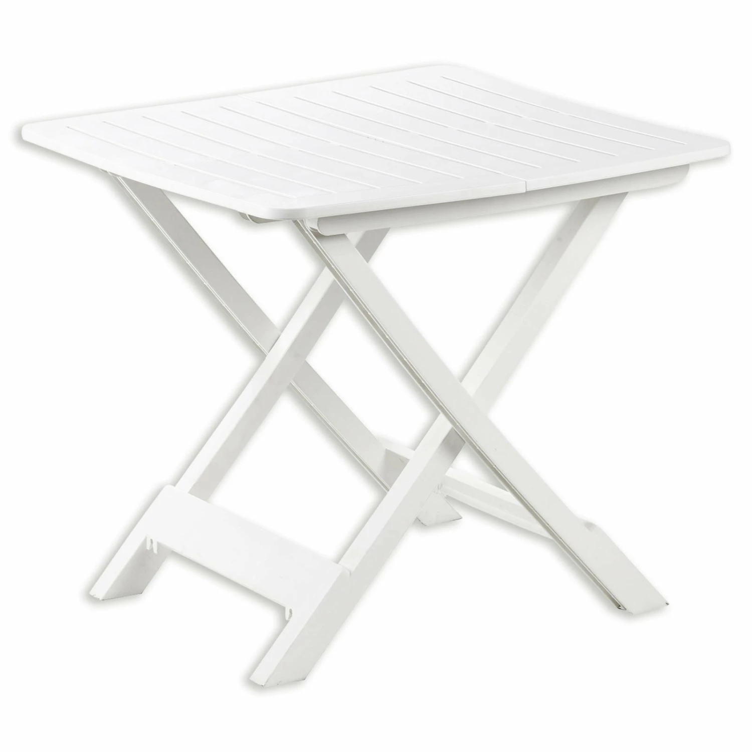 Ein schöner Klapptisch. Der weiße Tisch aus Kunststoff macht in Ihrem Garten eine wundervolle Figur. Er ist schick, schlicht und zeitlos. Mit seinen Maßen von etwa 79 x 70 x 72 cm bietet er sich optimal als Beistelltisch an, für kleinere Terrassen oder Ihrem Balkon.
