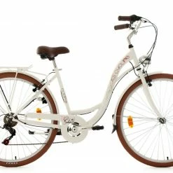 Der Rahmen des Fahrradmodelles EDEN im leichten Cremeweiß zieht die Blicke auf sich. Das Design des Fahrrads ist ideal für Cityfahrten, wie zum Beispiel zur Arbeit oder zum Einkaufen. Für eine bequeme Sitzposition und einen leichten Aufstieg sorgt der Tiefeinsteigerstahlrahmen in Kombination mit dem gefederten Citysattel sowie dem gebogenen Lenker. Das Rad ist komplett ausgestattet: Neben der 6-Gang-Schaltung, hat es unter anderem auch eine Lichtanlage, so dass Sie auch bei Dunkelheit sicher vorankommen.