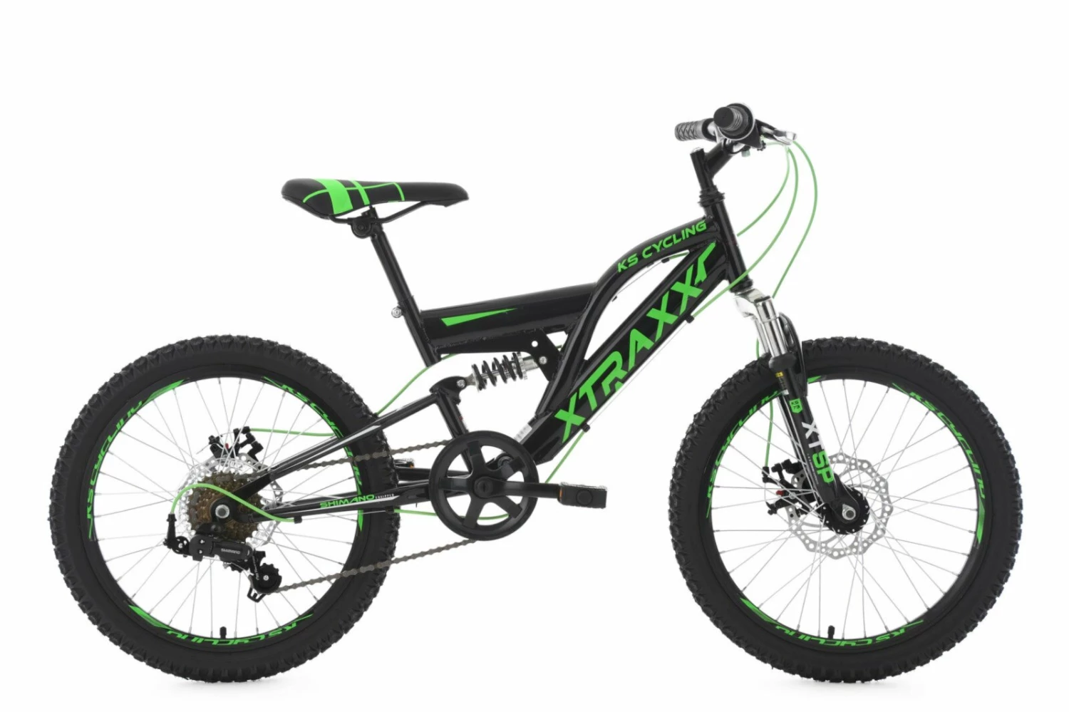 KS Cycling Kinder-Mountainbike FULLY XTRAXX 20“ – schwarz-grün – 30 cm Rahmenhöhe