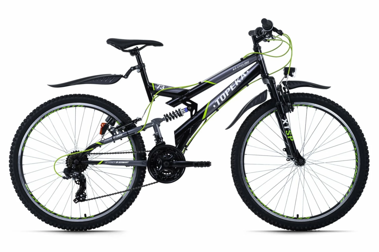 KS Cycling Mountainbike Fully ATB 26“ TOPEKA – grau-grün – Rahmenhöhe 48 cm