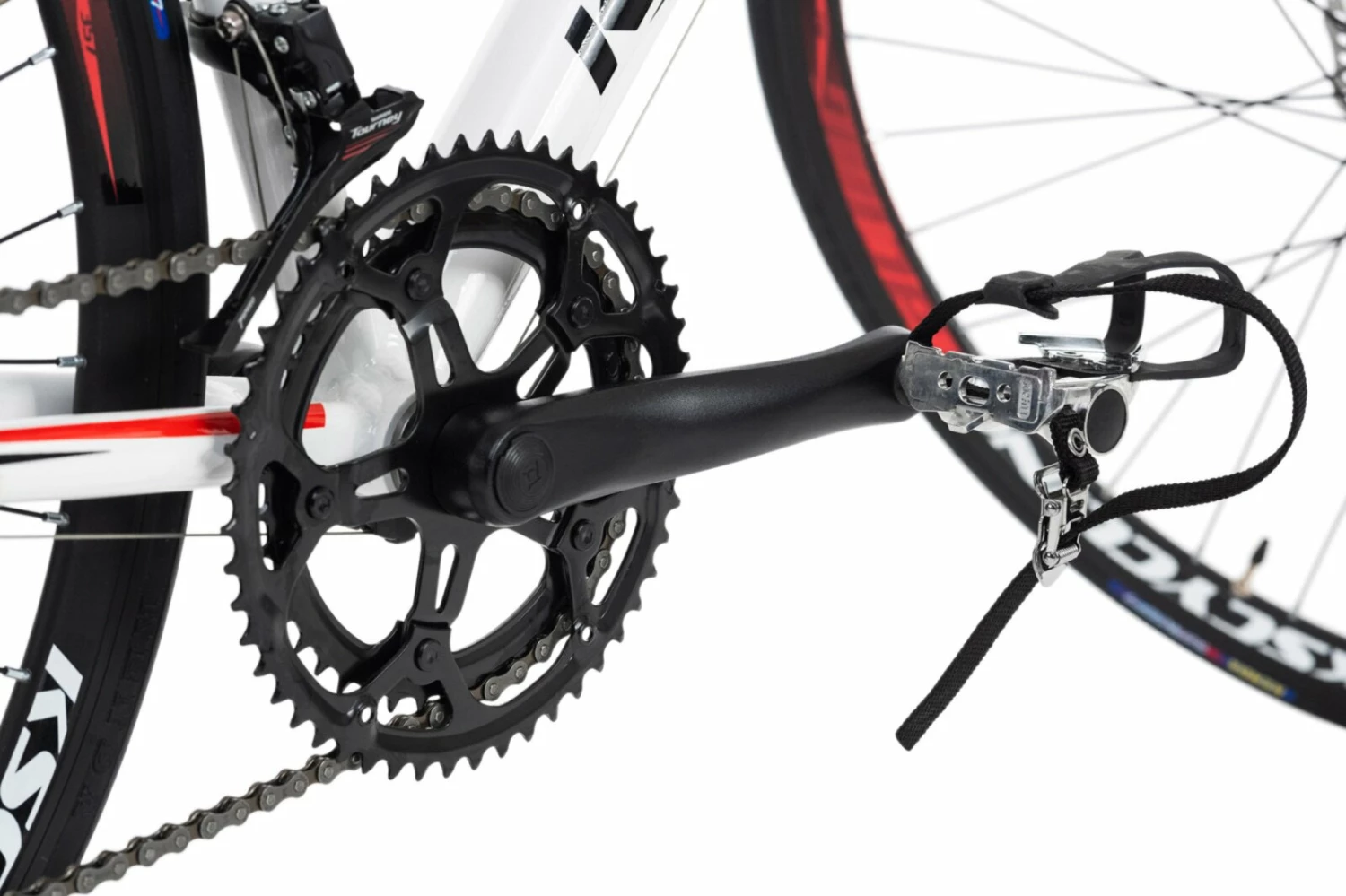 - Pedale: Stahl-/Kunststoffpedale mit Haken und Riemen