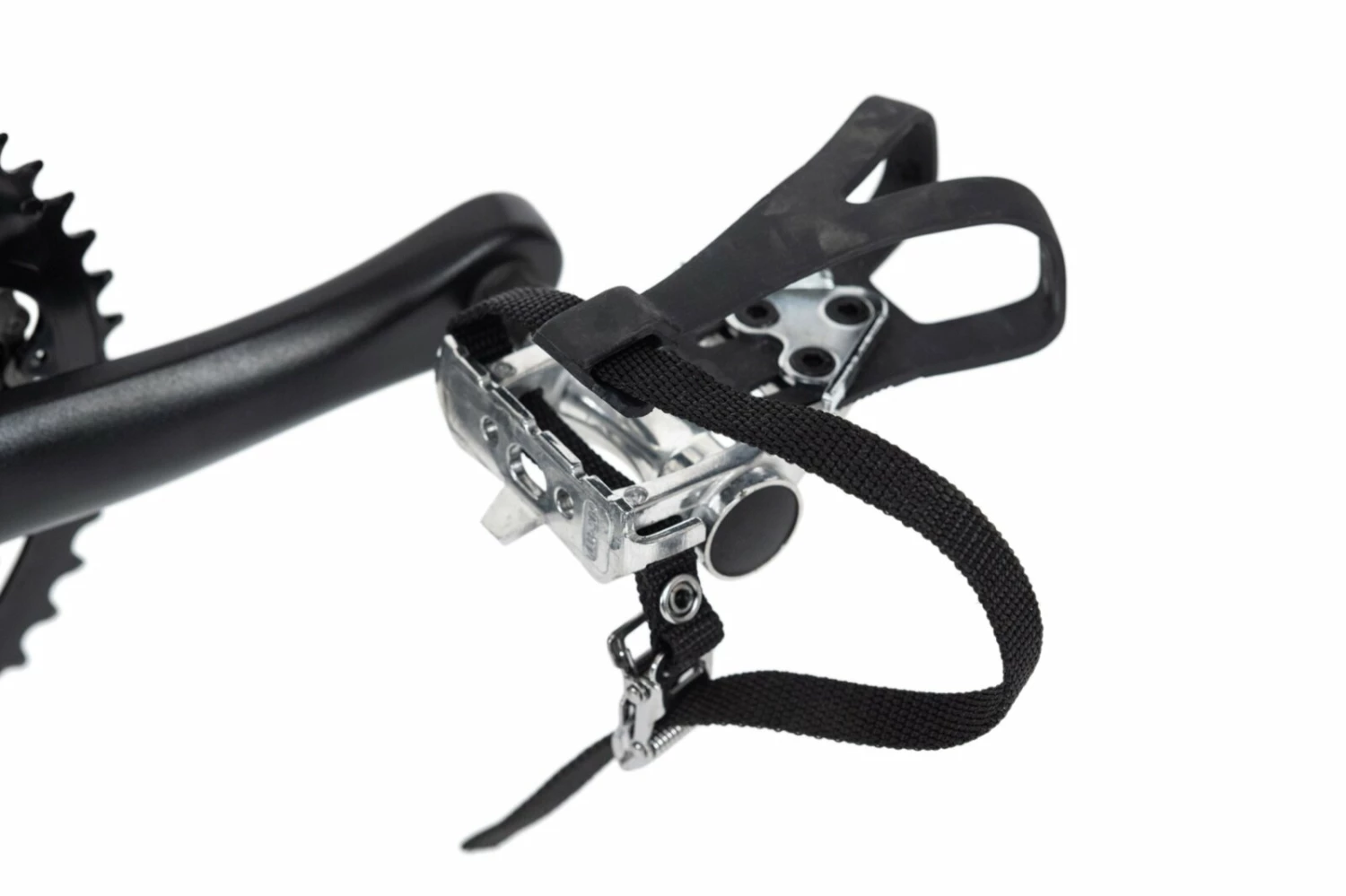- Stahl-/Kunststoffpedale mit Haken und Riemen