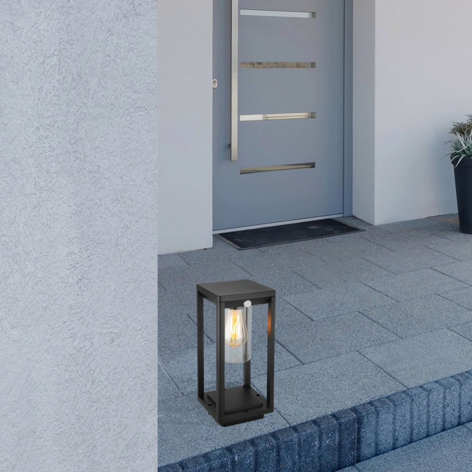 Die schwarze LED-Außenleuchte ist mit einem Bewegungssensor ausgestattet und sorgt für eine moderne Atmospäre, die in vielen Stilen integriert werden kann.