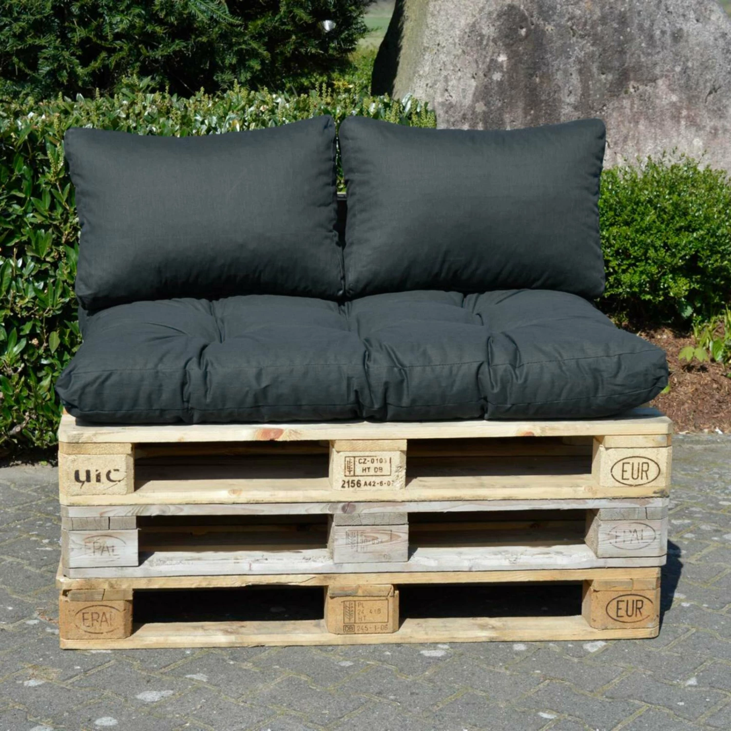 Für Ihre Palettenmöbel ist dieses Palettenkissen-Set in Anthrazit geradezu perfekt. Das Sitz- und die beiden Rückenkissen sorgen für einen tollen Sitzkomfort und eine angenehme Polsterung. Sie sind wasserabweisend und im Lieferumfang ist eine praktische Tasche inbegriffen.