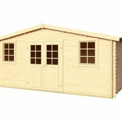 Aktion 🤩 Gartenhaus EBRO C – Fichte massiv – naturbelassen – 390×390 cm 😀