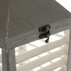 Bestes Angebot 😀 Holzlaterne AGDA – grau-weiß – Lamellenoptik ✔️