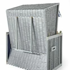 Großhandel 🎁 Strandkorb – Geflecht grau – Stoff blau-weiß – mit LED-Beleuchtung – 116×160 cm 🎉