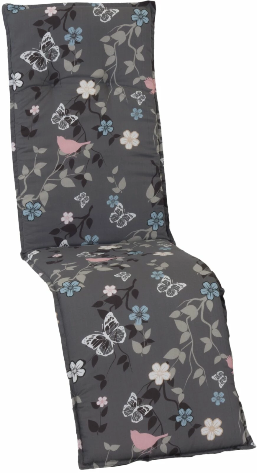 Relaxstuhl-Auflage – grau – Blumen – 171×50 cm