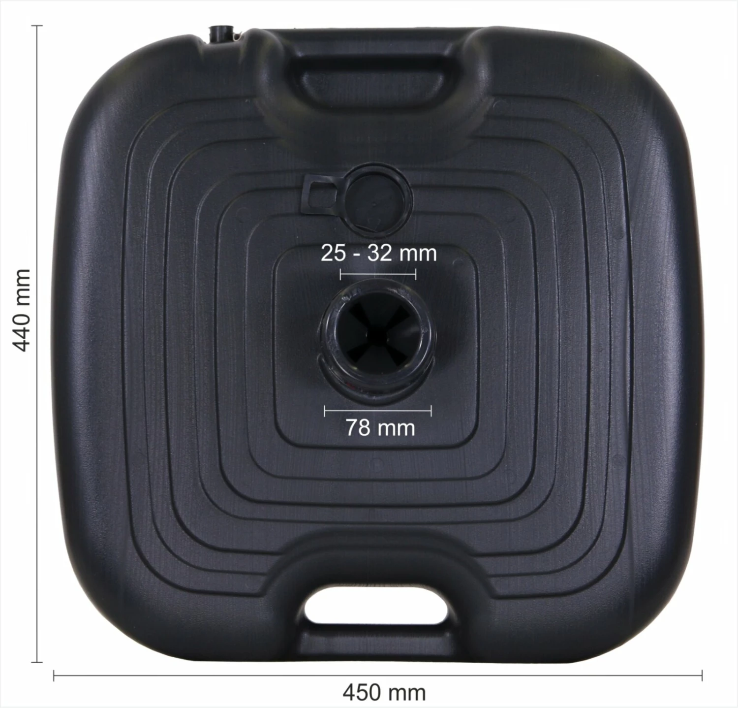 Dieser PE-Ständer hat eine Füllmenge von ca. 20 Liter, besteht aus Kunststoff und ist mit Sand oder Wasser zu befüllen. Geeignet ist er für Stockdurchmesser von 25 – 32 mm.