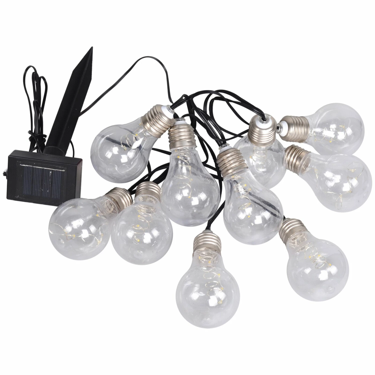 Diese Solar-LED-Lichterkette eignet sich bestens für Ihren Außenbereich im Garten, um diesen wohnlicher und gemütlicher zu gestalten. Die Lichterkette enthält zehn Leuchtmittel in einer Länge von etwa 3,8 Metern und einen Schalter zum Ein- und Ausschalten. Somit können Sie auch im Dunkeln einen schönen Abend im Garten verbringen.