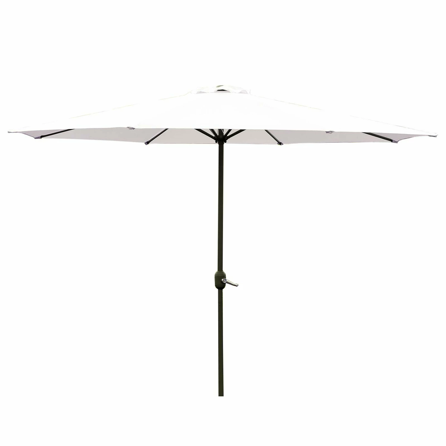 Der etwa 234 Zentimeter hohe Sonnenschirm wird Ihnen an sonnigen Tagen Schatten spenden und schützt zudem vor UV-Strahlen. Der cremefarbene Schirm lässt sich mittels Metallkurbel öffnen und schließen.