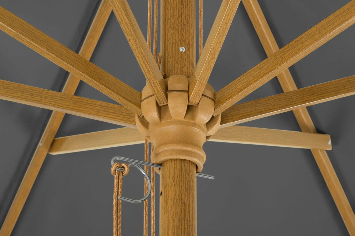 Dieser anthrazitfarbene Sonnenschirm MALAGA mit einem Durchmesser von 300 cm wird für reichlich Schatten sorgen! Das Gestell in Holzoptik ist der Hingucker und verleiht diesem Schirm ein natürliches Äußeres. Der air-vent sorgt für das Entweichen der warmen Luft, damit diese sich nicht unter dem Schirm staut. Der doppelte Seilzug sorgt für ein einfaches Öffnen und Schließen.