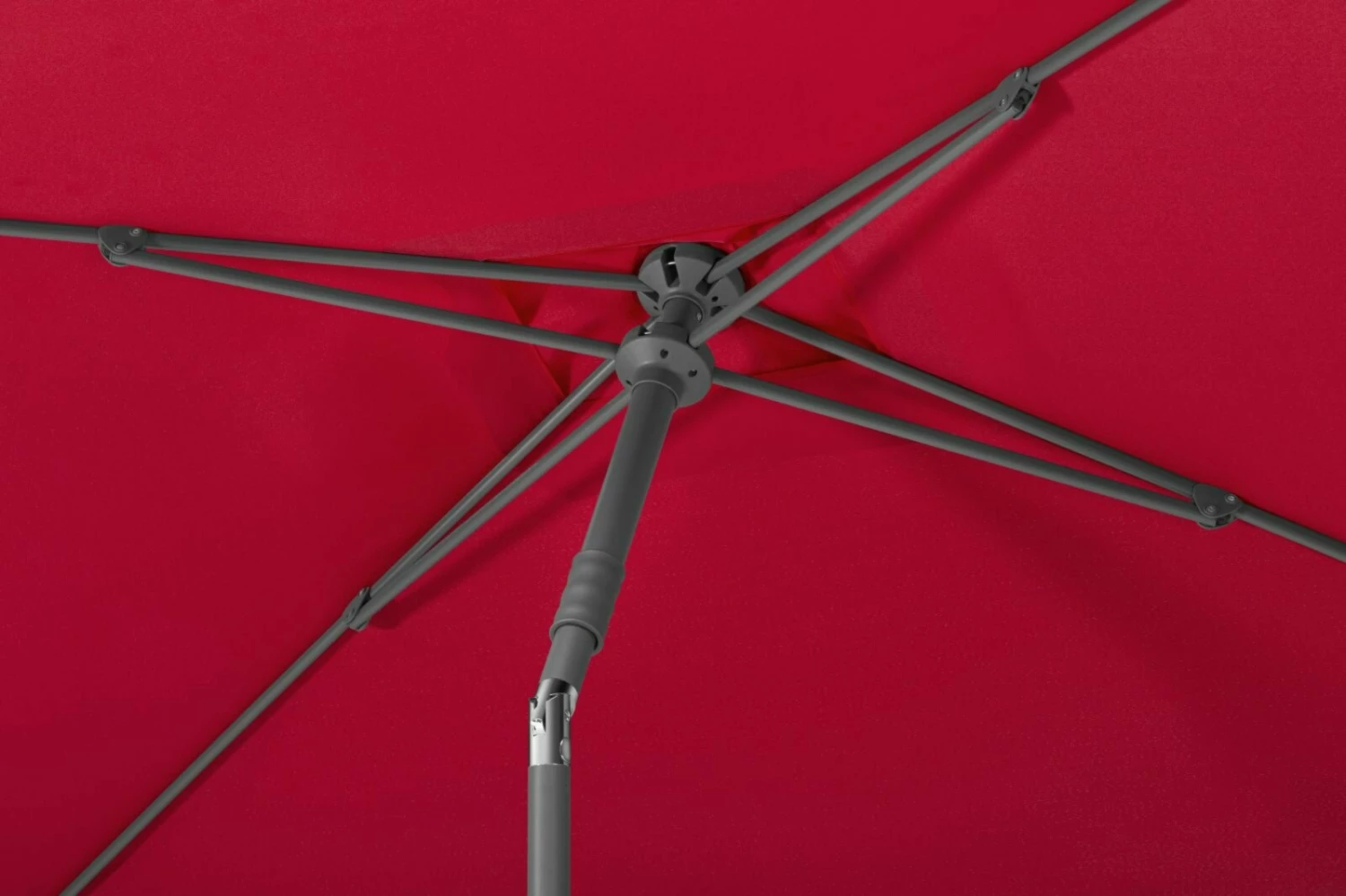 Der rechteckige Sonnenschirm SEVILLA in Rot schützt Sie vor gefährlichen UV-Strahlen und schafft zudem ein angenehmes Plätzchen für eine Pause. Der Schirm ist mit einem Bezug aus wasserabstoßend imprägniertem Polyester-Material bezogen und kann problemlos per Push-Up geöffnet werden. Bei Bedarf kann der Bezug abgenommen und per Hand gewaschen werden.