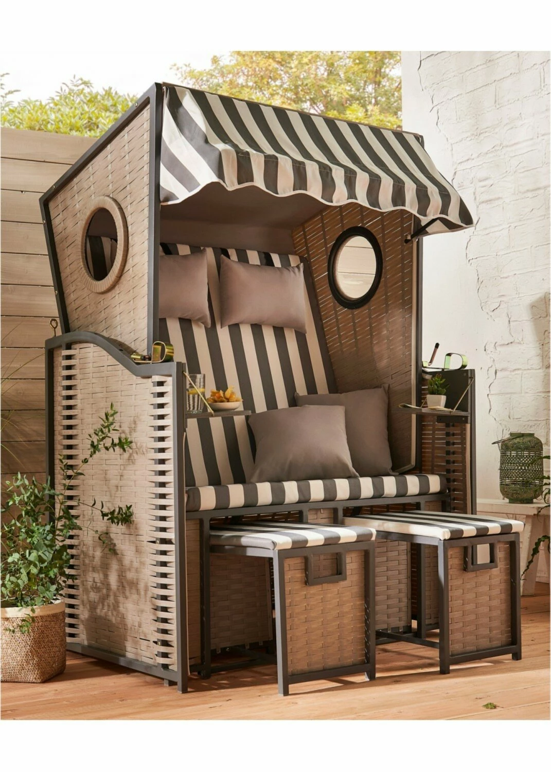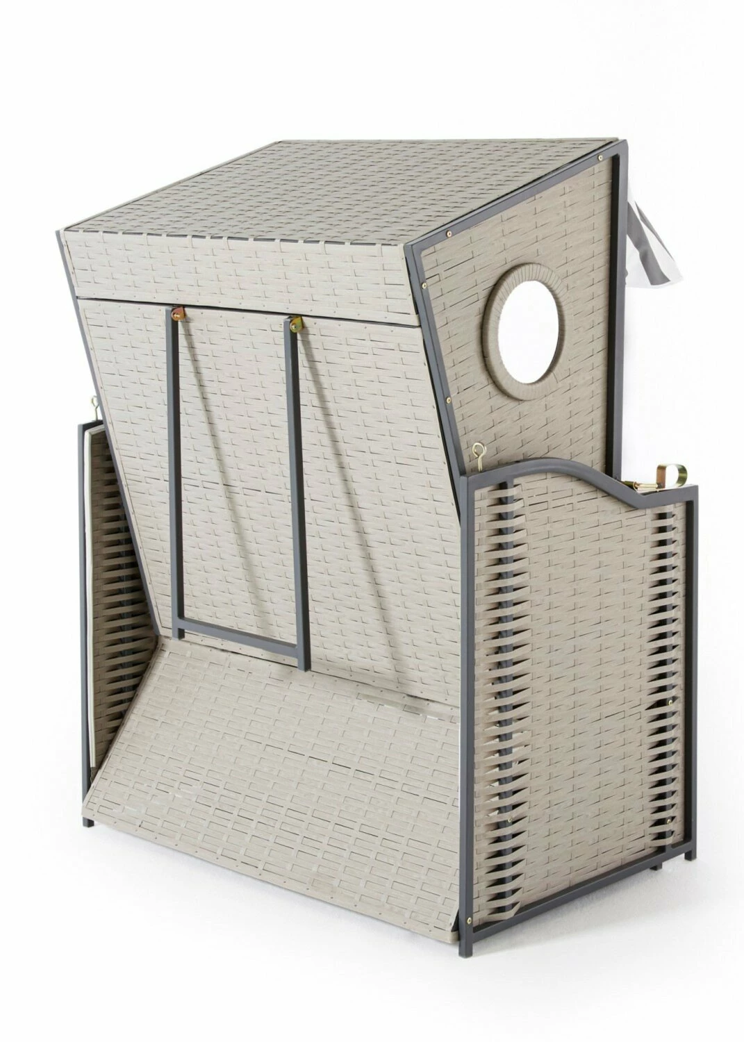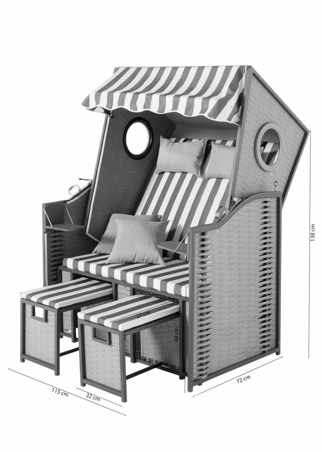 Strandkorb – grau-weiß – mit Bullaugen – 114×160 cm