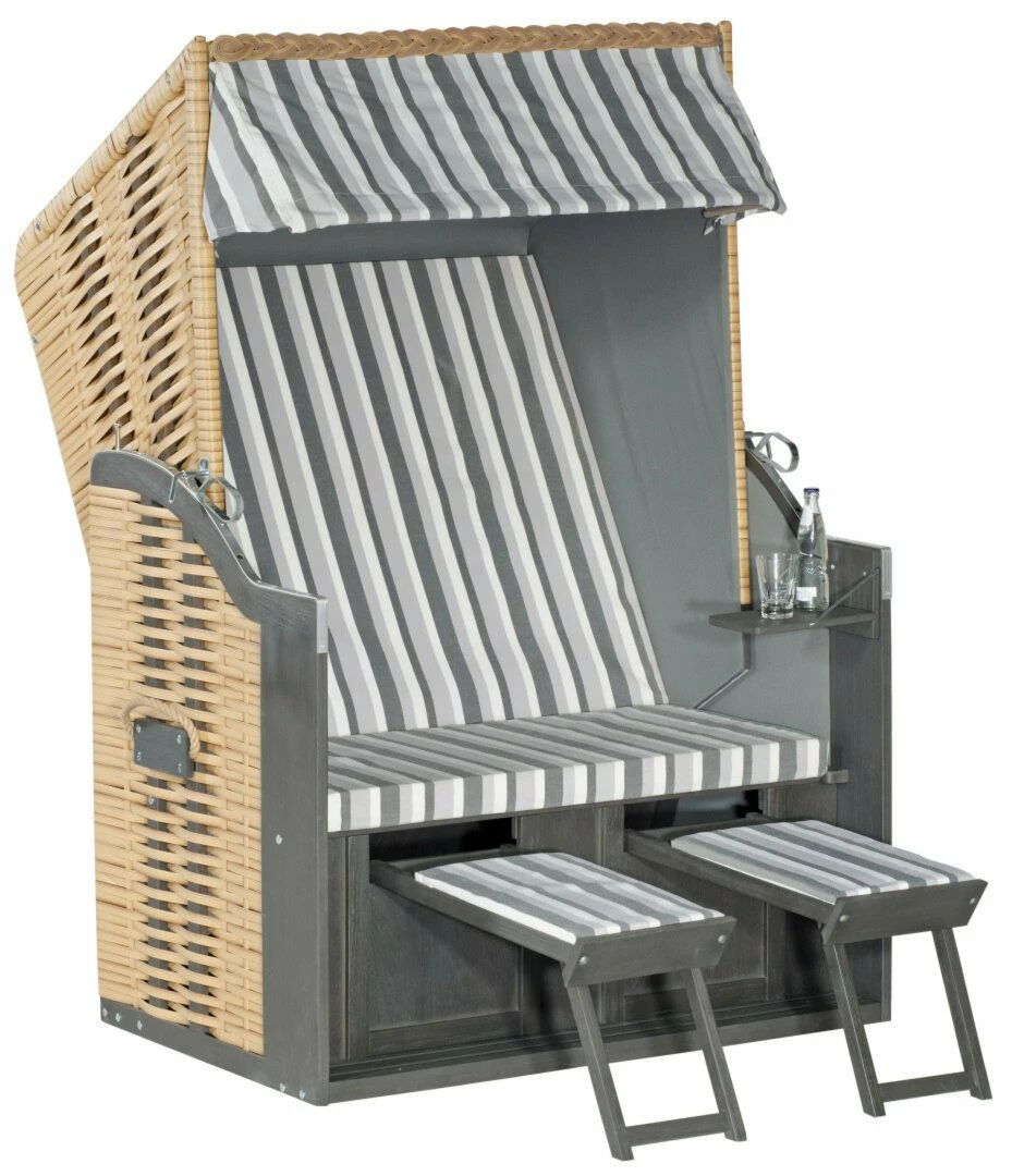 Dieser 2-Sitzer Strandkorb im schlichten Design überzeugt vor allem durch Komfort. Denn mit den herausziehbaren Fußstützen können Sie es sich besonders gemütlich machen und mit dem mehrfach verstellbaren Oberkorb Ihre ideale Sitzposition einstellen. Die Sonnenmarkise spendet Ihnen an einem sonnigen Tag ausreichend Schatten. Auf dem kleinen Seitentisch ist ausreichend Platz für erfrischende Getränke. Die Lieferung des Strandkorbs erfolgt zerlegt zum Eigenaufbau.