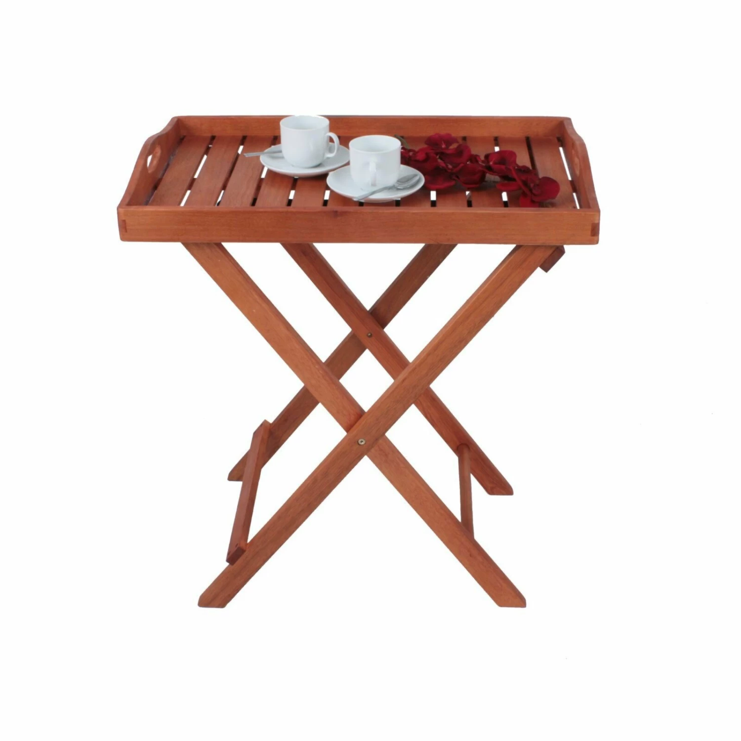 Der Tablettständer DALLAS besteht aus Eukalyptusholz und überzeugt durch seine clevere Konstruktion aus Gestell und abnehmbaren Tablett. Dadurch kann er auch als Beistelltisch genutzt werden. Die klassische Optik erlaubt zudem die Kombination mit verschiedenen Gartenmöbeln.