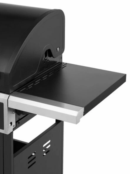 - schwarz pulverbeschichtete Seitenablagen mit Edelstahlzierleisten