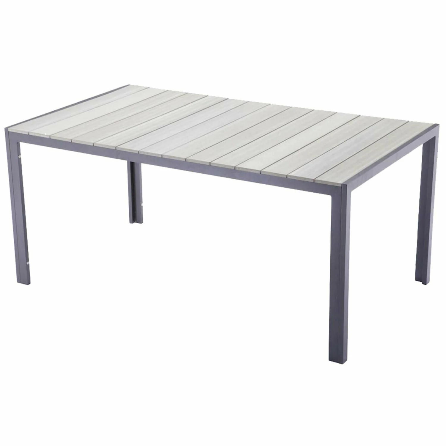 Der Gartentisch OLIVIA ist durch das Aluminiumgestell sehr leicht und einfach zu tragen. Die Tischplatte hat eine hellgraue Holzoptik-Lattung. Der Tisch wird zerlegt geliefert.