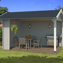 Unterstand KIRIAN – lichtgrau – Fichte massiv – 380×300 cm