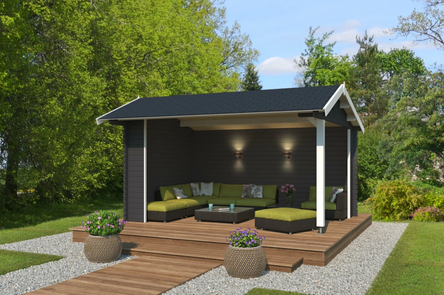 Unterstand SAN DIEGO – carbongrau – Fichte massiv – 425×300 cm