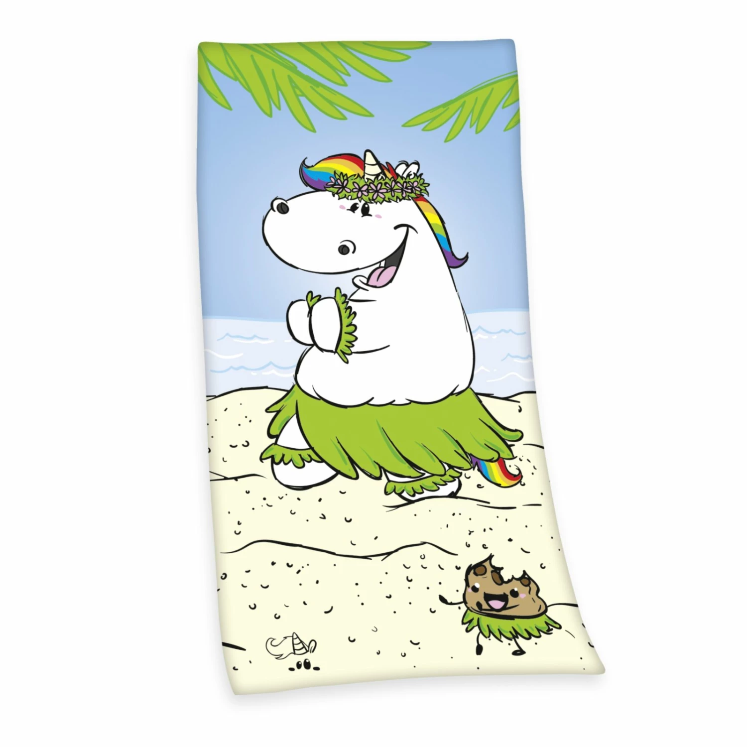 Am Strand oder im Schwimmbad darf dieses Velours-Badetuch PUMMELEINHORN nicht fehlen! Es wurde aus hautfreundlicher Baumwolle gefertigt und ist 75 x 150 cm groß.
