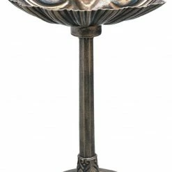Diese Bronzenfarbene Vogeltränke aus Polyresin ist ein echter Hingucker. Die Schale hat am Rand 2 Kunststoffvögel und weist eine Muschelform auf . Der Tellerfuß ist mit dekoratoven Zierornatmenten versehen. Ein toller Hotspot um in Ihrem Garten oder auf Ihrem Balkon Vögel beim Baden und trinken zu beobachten.