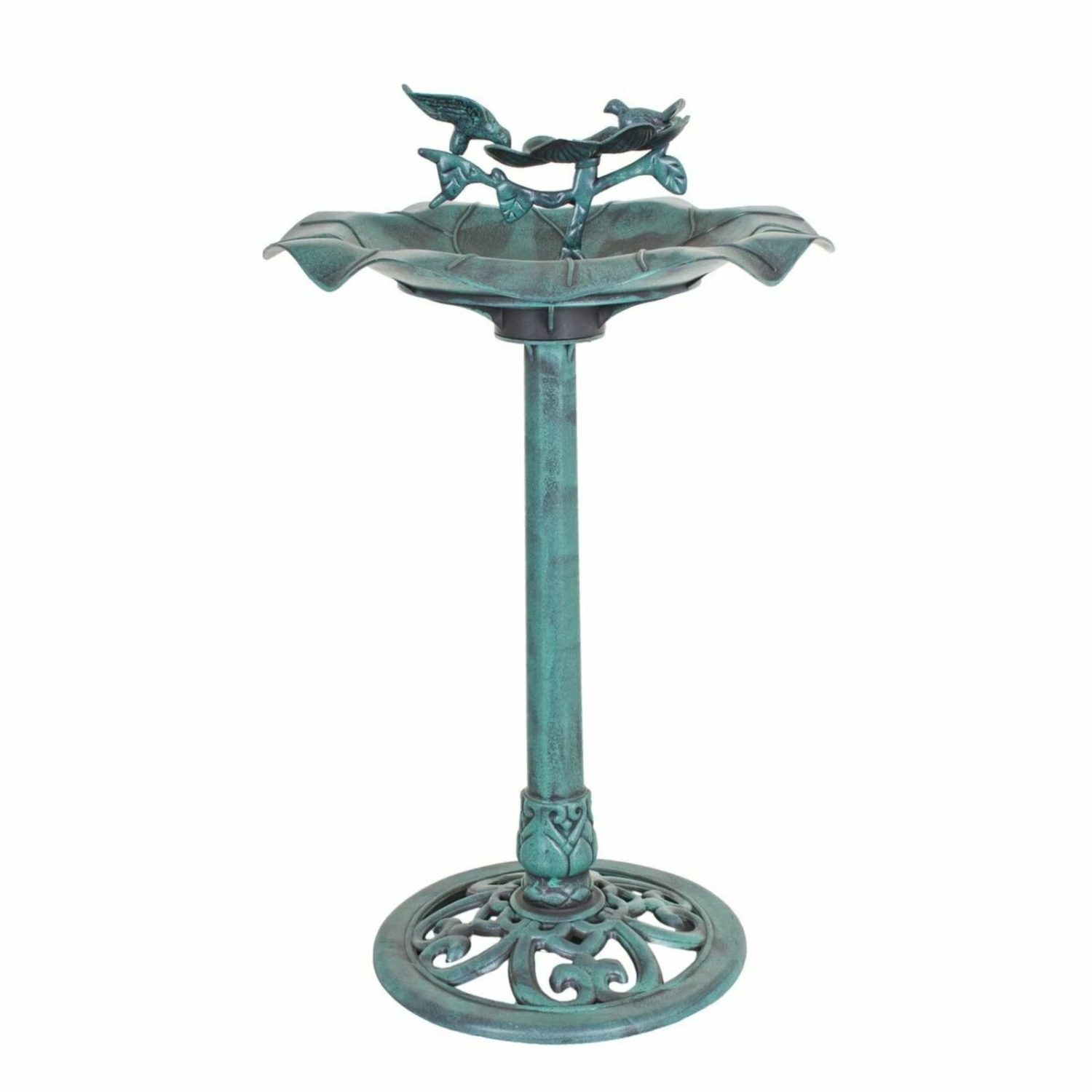 Diese grüne Vogeltränke aus Polyresin ist in einer grünen Gußeisenoptik gehalten. Die Schale hat am Rand 2 Kunststoffvögel und weist eine Laubblattform auf . Der Tellerfuß ist mit dekoratoven Zierornatmenten versehen. Ein toller Hotspot um in Ihrem Garten oder auf Ihrem Balkon Vögel beim Baden und trinken zu beobachten.