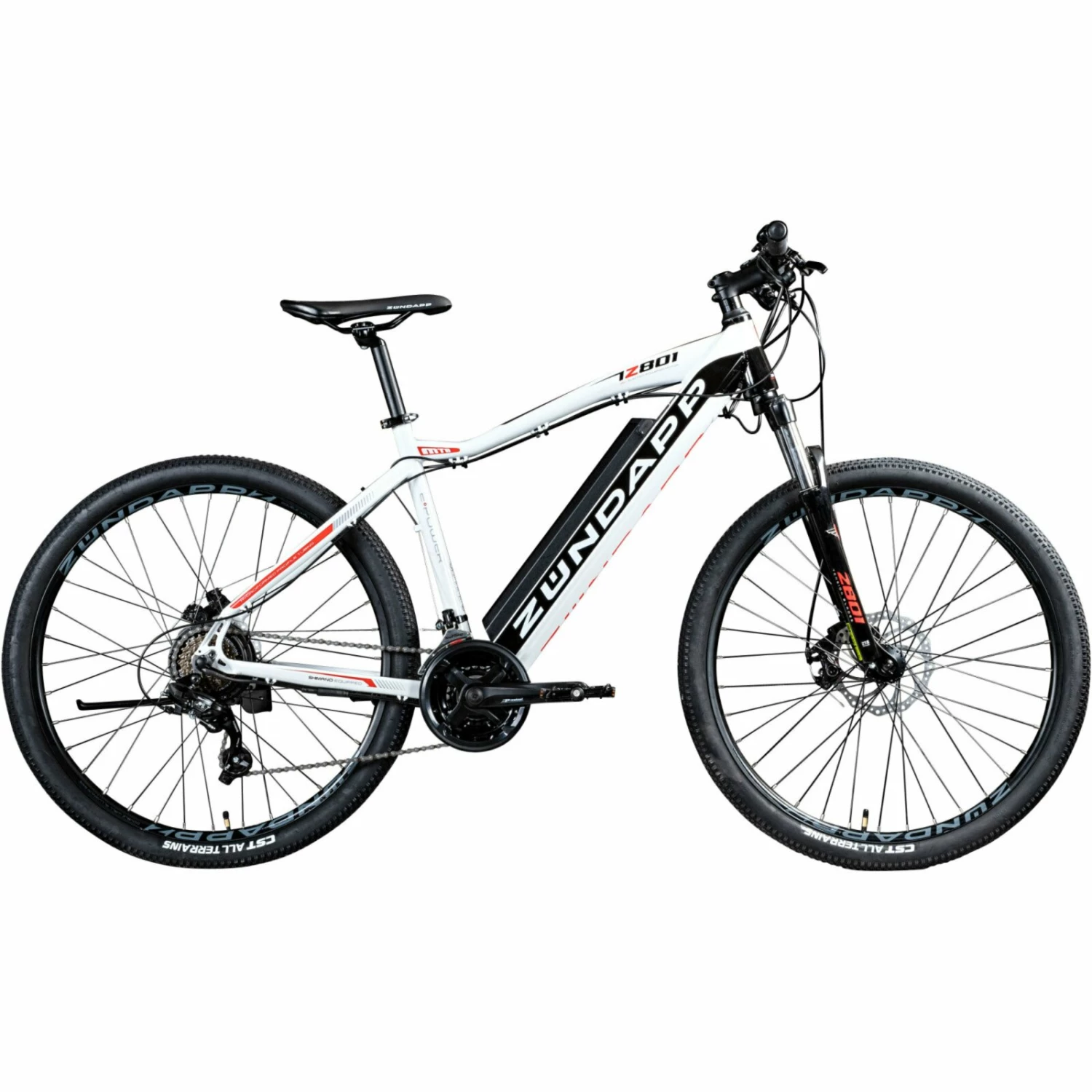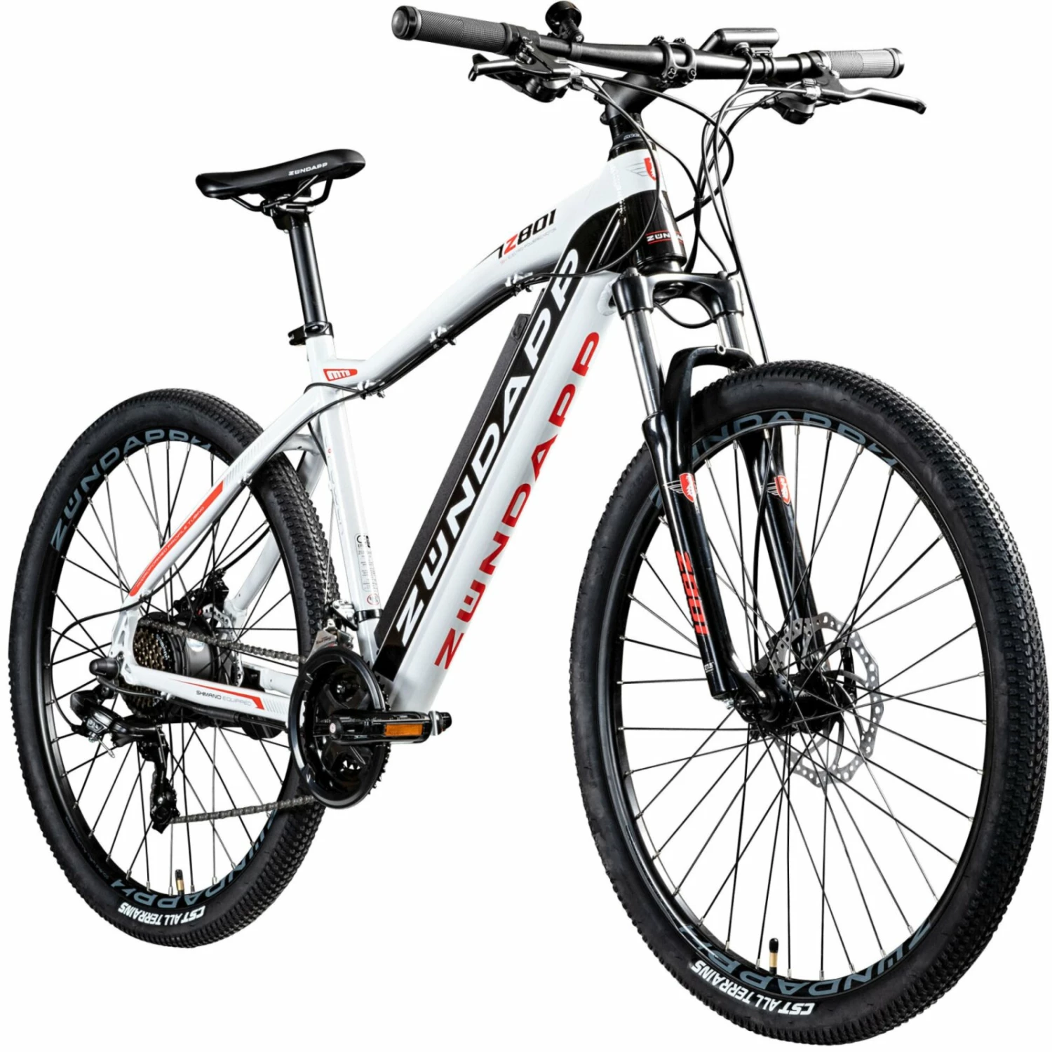 Mit diesem Zündapp Elektro Mountainbike Z801 in Schwarz und Weiß sind Touren durch das Gelände oder Wälder kein Problem mehr! Über das LCD-Display kann der Elektromotor stufenweise hinzu geschaltet werden und unterstützt Sie bis zu einer Geschwindigkeit von 25 km/h. Bei den eingebauten Bremsen handelt es sich um mechanische Scheibenbremsen. Diese bieten viele Vorteile, u.a. ist Bremsleistung bei Nässe ist besser, sie verdrecken nicht so schnell und man braucht weniger Handkraft bei der Nutzung.