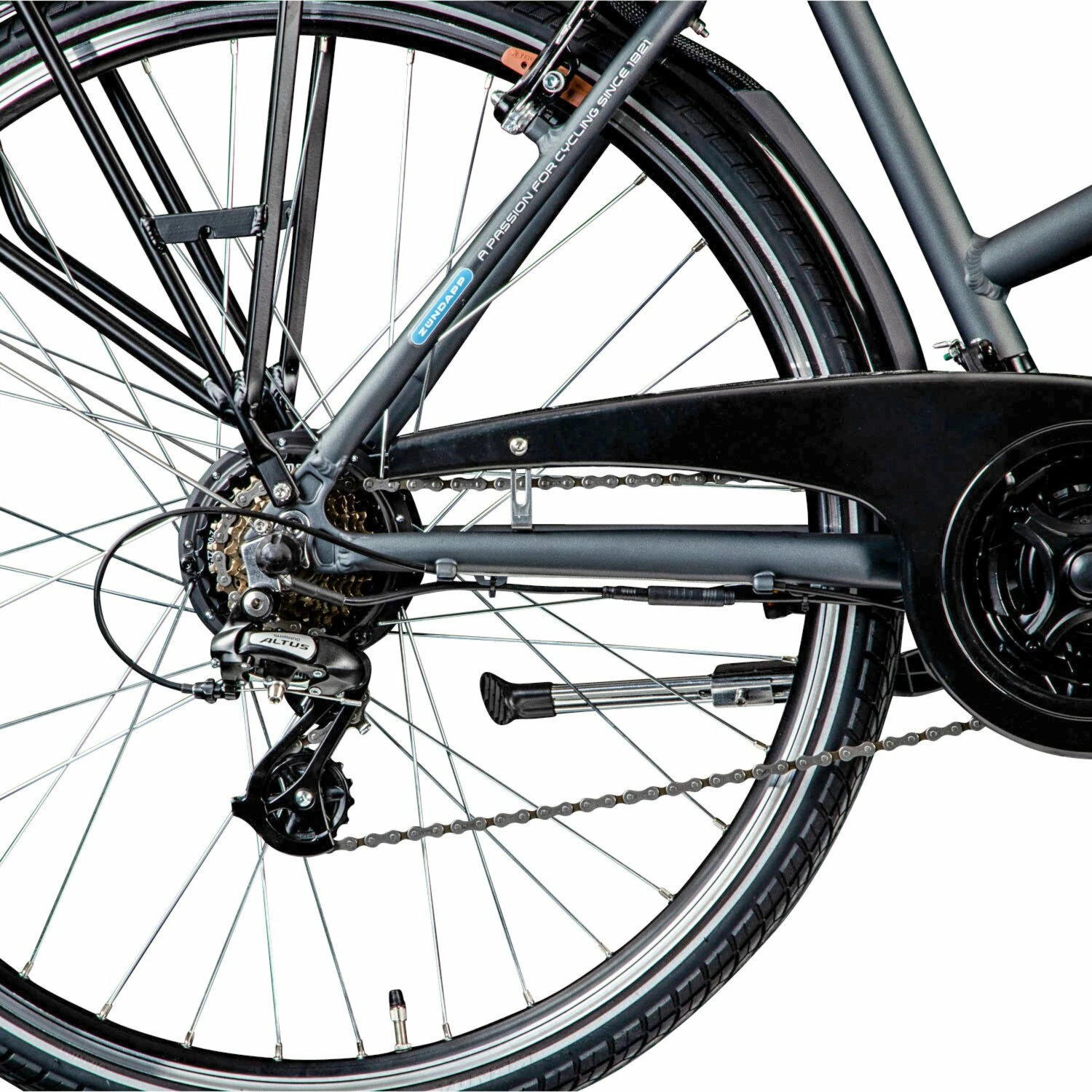 - Laufräder: 28″, 700c x 40c mit Reflexstreifen